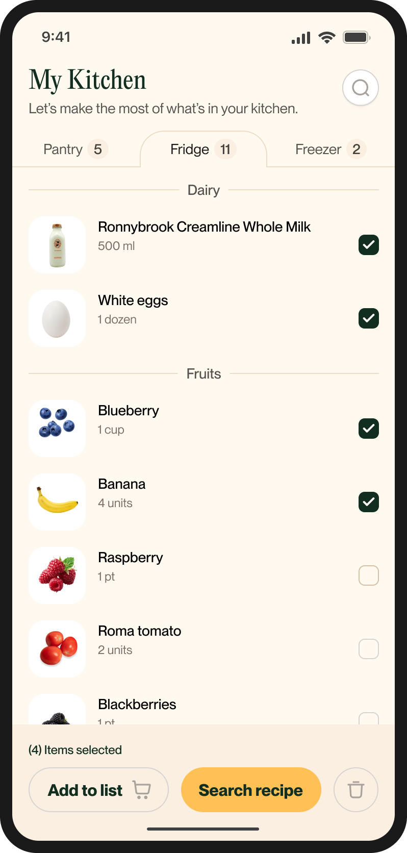 Advanced computer vision manages your pantry and fridge inventory to restock your groceries based on your usage — so you never run out again.
